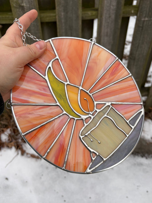 Candle's Glow Stained Glass Suncatcher