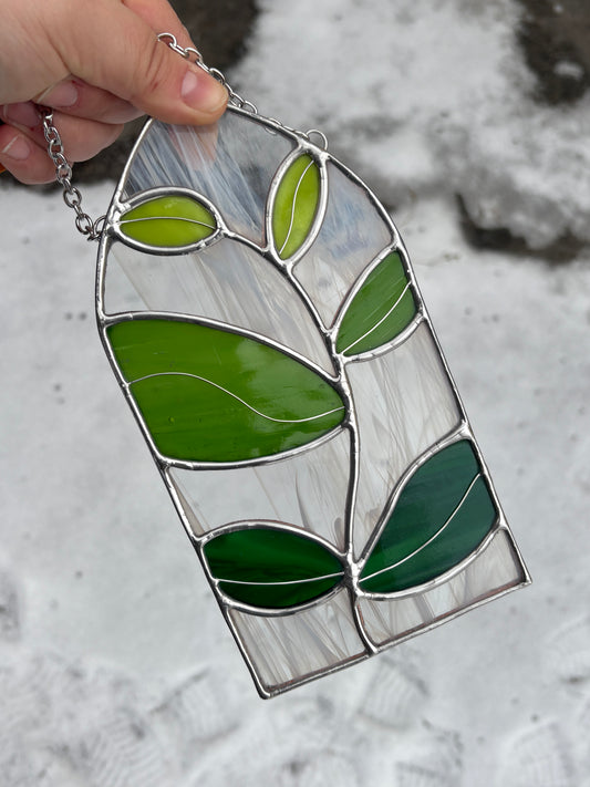 Ombré Green Leaf Vine Stained Glass